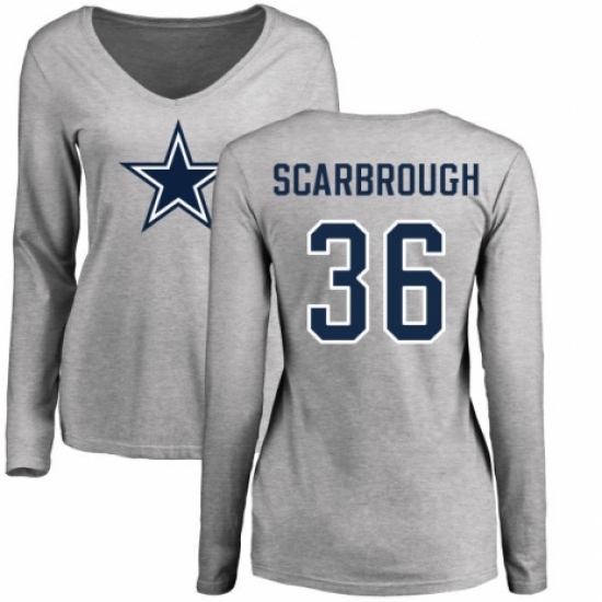 NFL Women's Nike Dallas Cowboys #36 Bo Scarbrough Ash Name & Number Logo Slim Fit Long Sleeve T-Shirt