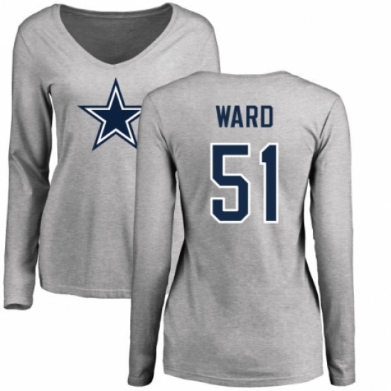 NFL Women's Nike Dallas Cowboys #51 Jihad Ward Ash Name & Number Logo Slim Fit Long Sleeve T-Shirt