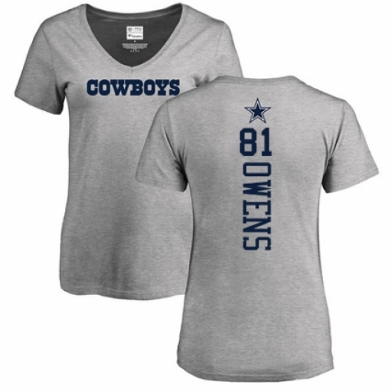 NFL Women's Nike Dallas Cowboys #81 Terrell Owens Ash Backer V-Neck T-Shirt