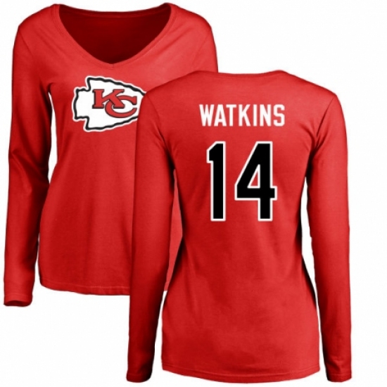 NFL Women's Nike Kansas City Chiefs #14 Sammy Watkins Red Name & Number Logo Slim Fit Long Sleeve T-Shirt