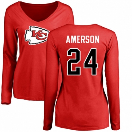 >NFL Women's Nike Kansas City Chiefs #24 David Amerson Red Name & Number Logo Slim Fit Long Sleeve T-Shirt