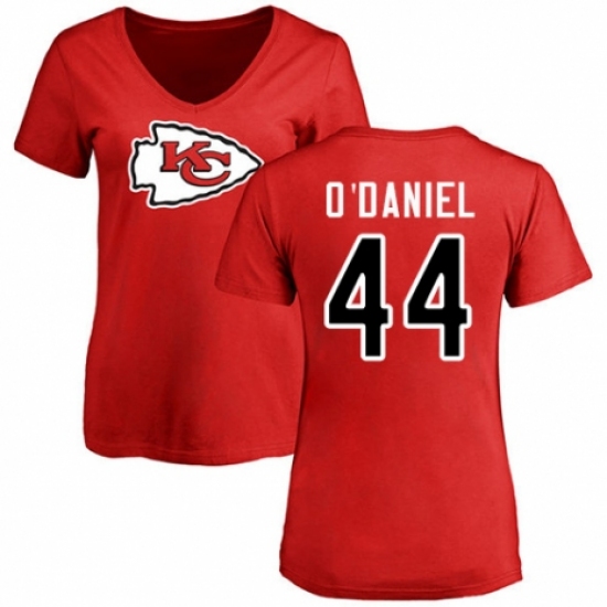 NFL Women's Nike Kansas City Chiefs #44 Dorian O'Daniel Red Name & Number Logo Slim Fit T-Shirt
