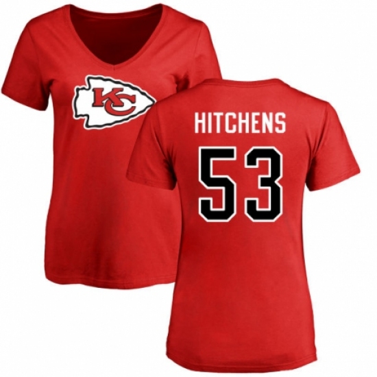 NFL Women's Nike Kansas City Chiefs #53 Anthony Hitchens Red Name & Number Logo Slim Fit T-Shirt