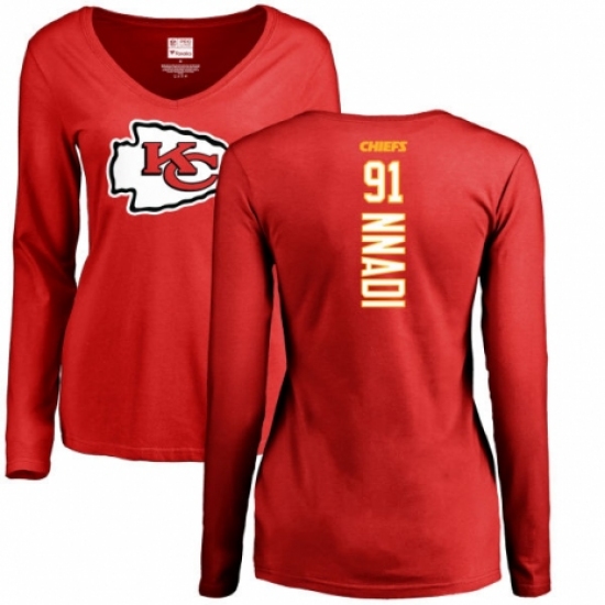NFL Women's Nike Kansas City Chiefs #91 Derrick Nnadi Red Backer Slim Fit Long Sleeve T-Shirt