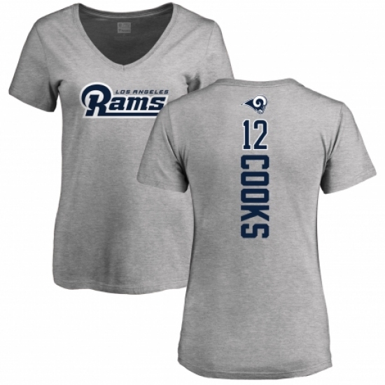 NFL Women's Nike Los Angeles Rams #12 Brandin Cooks Ash Backer V-Neck T-Shirt