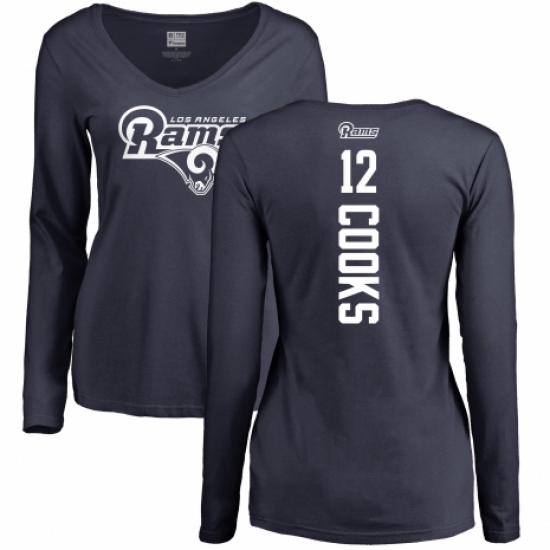 NFL Women's Nike Los Angeles Rams #12 Brandin Cooks Navy Blue Backer Slim Fit Long Sleeve T-Shirt