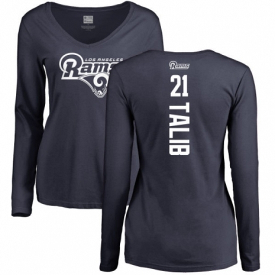 >NFL Women's Nike Los Angeles Rams #21 Aqib Talib Navy Blue Backer Slim Fit Long Sleeve T-Shirt