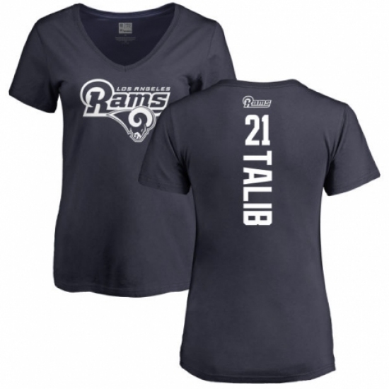 >NFL Women's Nike Los Angeles Rams #21 Aqib Talib Navy Blue Backer T-Shirt