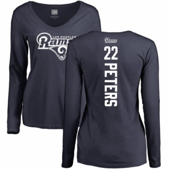 NFL Women's Nike Los Angeles Rams #22 Marcus Peters Navy Blue Backer Slim Fit Long Sleeve T-Shirt