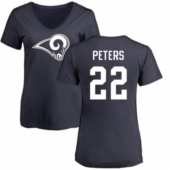 NFL Women's Nike Los Angeles Rams #22 Marcus Peters Navy Blue Name & Number Logo Slim Fit T-Shirt
