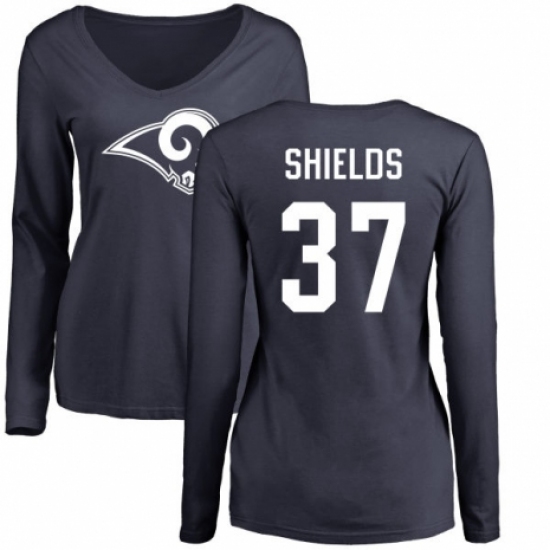 >NFL Women's Nike Los Angeles Rams #37 Sam Shields Navy Blue Name & Number Logo Slim Fit Long Sleeve T-Shirt