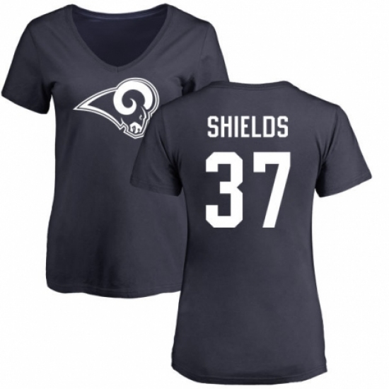 >NFL Women's Nike Los Angeles Rams #37 Sam Shields Navy Blue Name & Number Logo Slim Fit T-Shirt