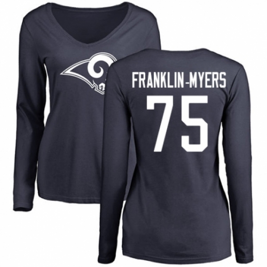 >NFL Women's Nike Los Angeles Rams #57 John Franklin-Myers Navy Blue Name & Number Logo Slim Fit Long Sleeve T-Shirt