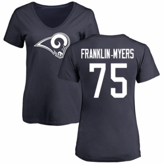 >NFL Women's Nike Los Angeles Rams #57 John Franklin-Myers Navy Blue Name & Number Logo Slim Fit T-Shirt