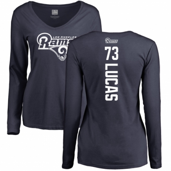 NFL Women's Nike Los Angeles Rams #73 Cornelius Lucas Navy Blue Backer Slim Fit Long Sleeve T-Shirt