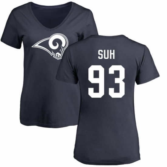 NFL Women's Nike Los Angeles Rams #93 Ndamukong Suh Navy Blue Name & Number Logo Slim Fit T-Shirt