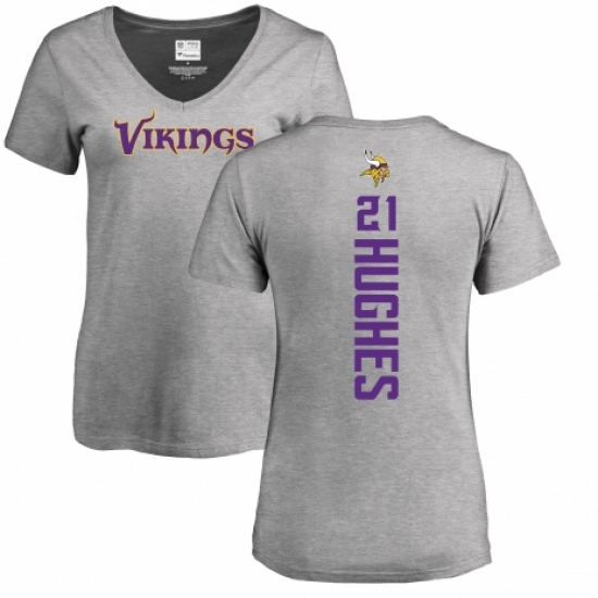 >NFL Women's Nike Minnesota Vikings #21 Mike Hughes Ash Backer V-Neck T-Shirt