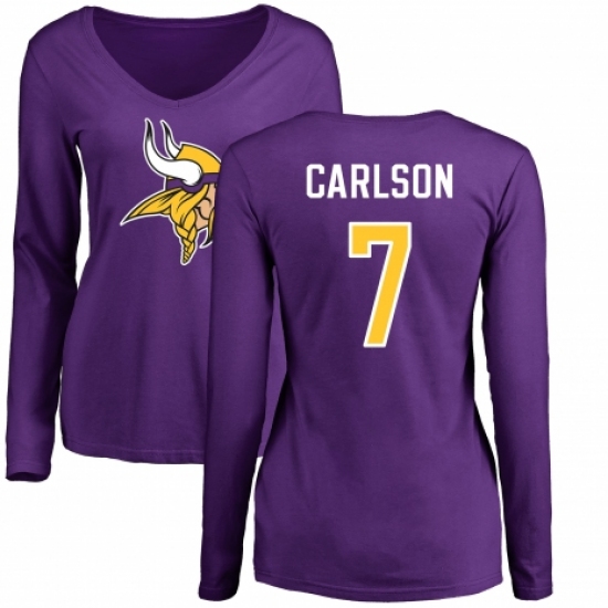 >NFL Women's Nike Minnesota Vikings #7 Daniel Carlson Purple Name & Number Logo Slim Fit Long Sleeve T-Shirt