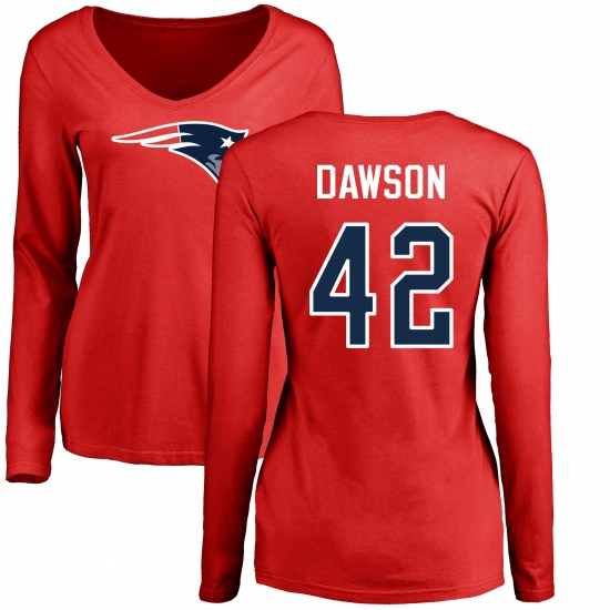 NFL Women's Nike New England Patriots #42 Duke Dawson Red Name & Number Logo Slim Fit Long Sleeve T-Shirt
