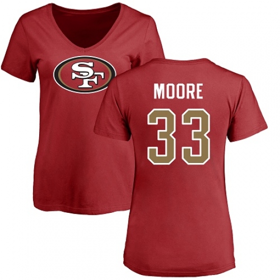 >NFL Women's Nike San Francisco 49ers #33 Tarvarius Moore Red Name & Number Logo T-Shirt