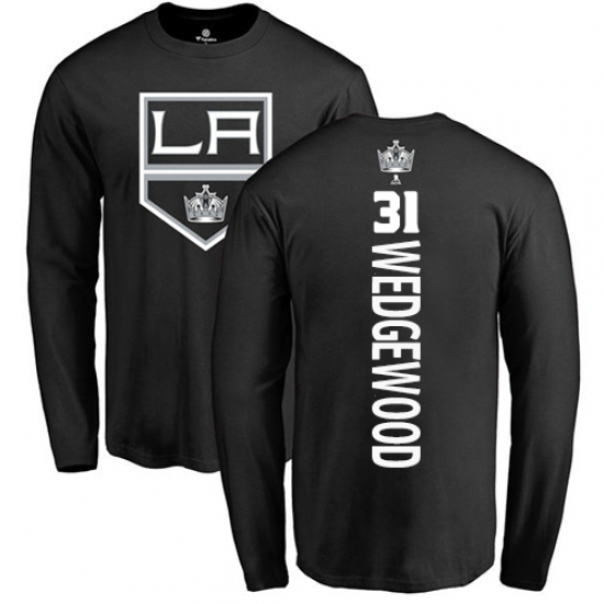 >NHL Adidas Los Angeles Kings #31 Scott Wedgewood Black Backer Long Sleeve T-Shirt