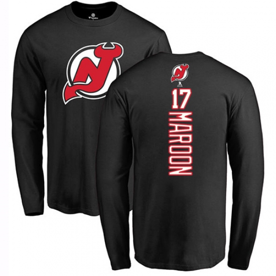 >NHL Adidas New Jersey Devils #17 Patrick Maroon Black Backer Long Sleeve T-Shirt