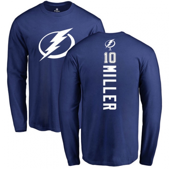 >NHL Adidas Tampa Bay Lightning #10 J.T. Miller Royal Blue Backer Long Sleeve T-Shirt