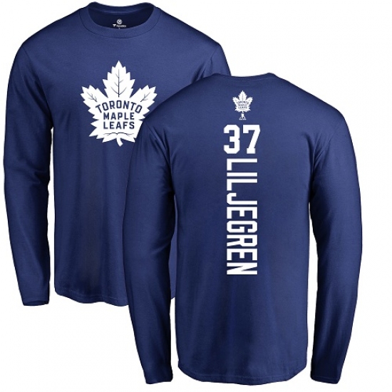NHL Adidas Toronto Maple Leafs #37 Timothy Liljegren Royal Blue Backer Long Sleeve T-Shirt
