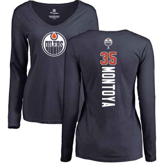 >NHL Women's Adidas Edmonton Oilers #35 Al Montoya Navy Blue Backer Slim Fit Long Sleeve T-Shirt
