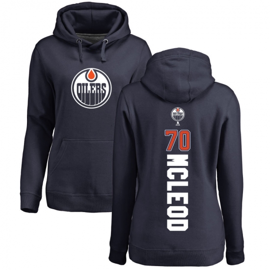 >NHL Women's Adidas Edmonton Oilers #70 Ryan McLeod Navy Blue Backer Pullover Hoodie