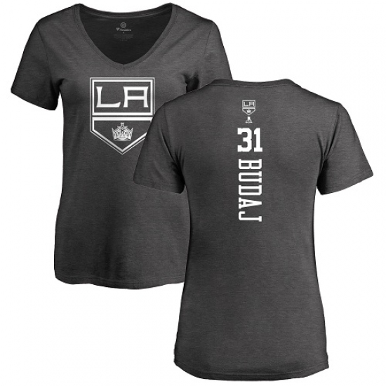 >NHL Women's Adidas Los Angeles Kings #31 Peter Budaj Charcoal One Color Backer T-Shirt