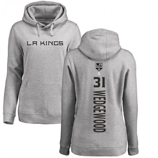 >NHL Women's Adidas Los Angeles Kings #31 Scott Wedgewood Ash Backer Pullover Hoodie