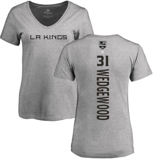 >NHL Women's Adidas Los Angeles Kings #31 Scott Wedgewood Ash Backer T-Shirt