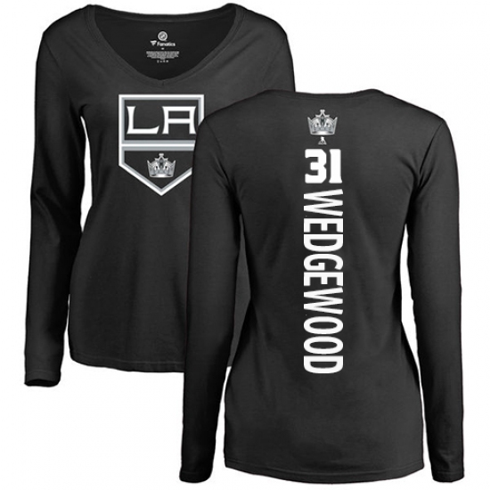 >NHL Women's Adidas Los Angeles Kings #31 Scott Wedgewood Black Backer Long Sleeve T-Shirt