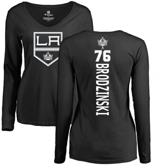 >NHL Women's Adidas Los Angeles Kings #76 Jonny Brodzinski Black Backer Long Sleeve T-Shirt