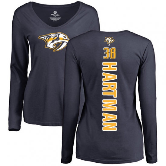 >NHL Women's Adidas Nashville Predators #38 Ryan Hartman Navy Blue Backer Long Sleeve T-Shirt