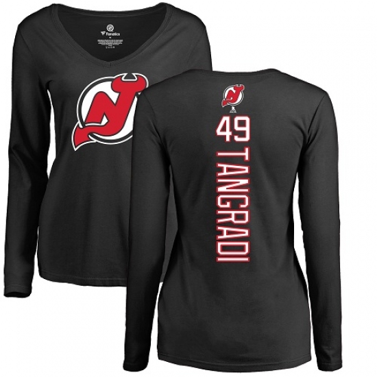 >NHL Women's Adidas New Jersey Devils #49 Eric Tangradi Black Backer Long Sleeve T-Shirt