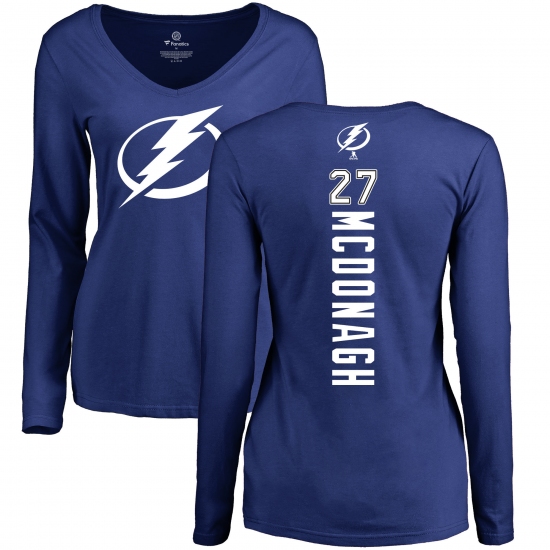 >NHL Women's Adidas Tampa Bay Lightning #27 Ryan McDonagh Royal Blue Backer V-Neck Long-Sleeve T-Shirt
