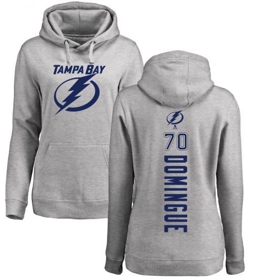 >NHL Women's Adidas Tampa Bay Lightning #70 Louis Domingue Ash Backer Pullover Hoodie