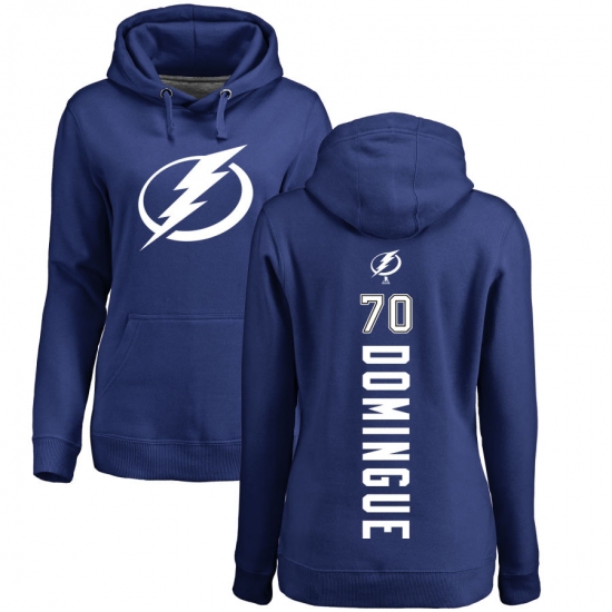 >NHL Women's Adidas Tampa Bay Lightning #70 Louis Domingue Royal Blue Backer Pullover Hoodie