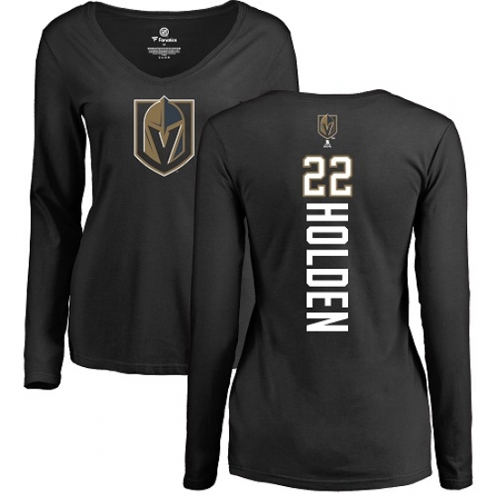 NHL Women's Adidas Vegas Golden Knights #22 Nick Holden Black Backer Slim Fit Long Sleeve T-Shirt