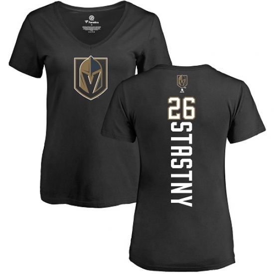 >NHL Women's Adidas Vegas Golden Knights #26 Paul Stastny Black Backer Slim Fit V-Neck T-Shirt
