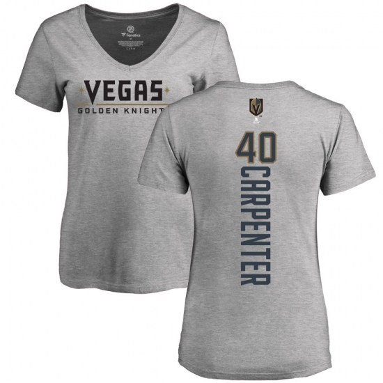 >NHL Women's Adidas Vegas Golden Knights #40 Ryan Carpenter Gray Backer Slim Fit V-Neck T-Shirt