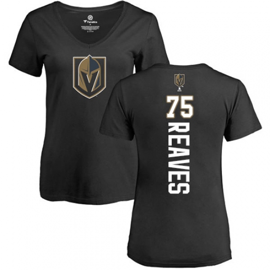 >NHL Women's Adidas Vegas Golden Knights #75 Ryan Reaves Black Backer Slim Fit V-Neck T-Shirt