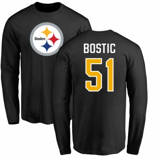 Nike Pittsburgh Steelers #51 Jon Bostic Black Name & Number Logo Long Sleeve T-Shirt