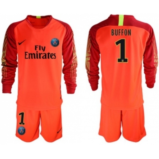 Paris Saint-Germain #1 Buffon Red Goalkeeper Long Sleeves Soccer Club Jersey