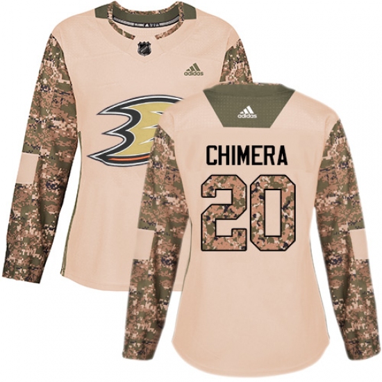 >Women's Adidas Anaheim Ducks #20 Jason Chimera Authentic Camo Veterans Day Practice NHL Jersey