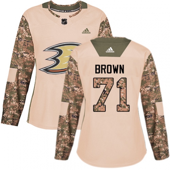 >Women's Adidas Anaheim Ducks #71 J.T. Brown Authentic Camo Veterans Day Practice NHL Jersey