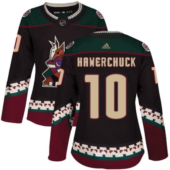 >Women's Adidas Arizona Coyotes #10 Dale Hawerchuck Authentic Black Alternate NHL Jersey
