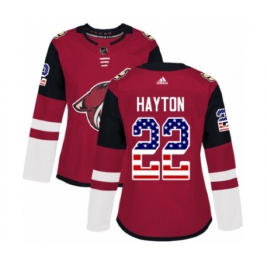Women's Adidas Arizona Coyotes #22 Barrett Hayton Authentic Red USA Flag Fashion NHL Jersey